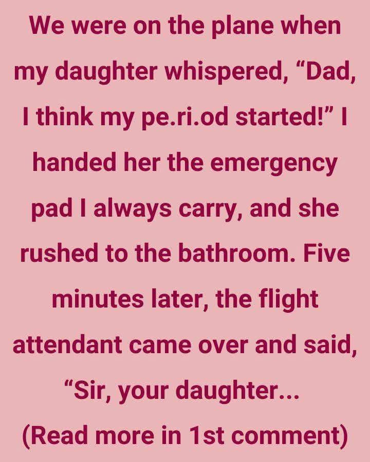 Once, while we were flying, my daughter leaned over and whispered, “Dad, I think I just got my period.” I gave her the emergency pad I always keep with me, and she hurried to the restroom. A few minutes later, the flight attendant came by and said, “Sir, your daughter asked if you have a real pad. She said you gave her a liner.”