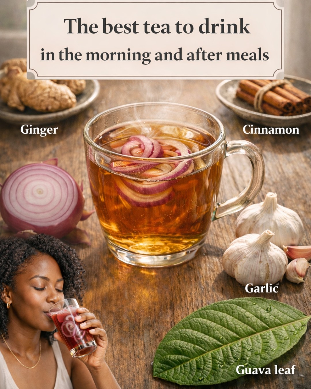 Best Morning & After-Dinner Herbal Tea Recipe with Ginger, Turmeric, Onion, Garlic, Cinnamon & Guava Leaves