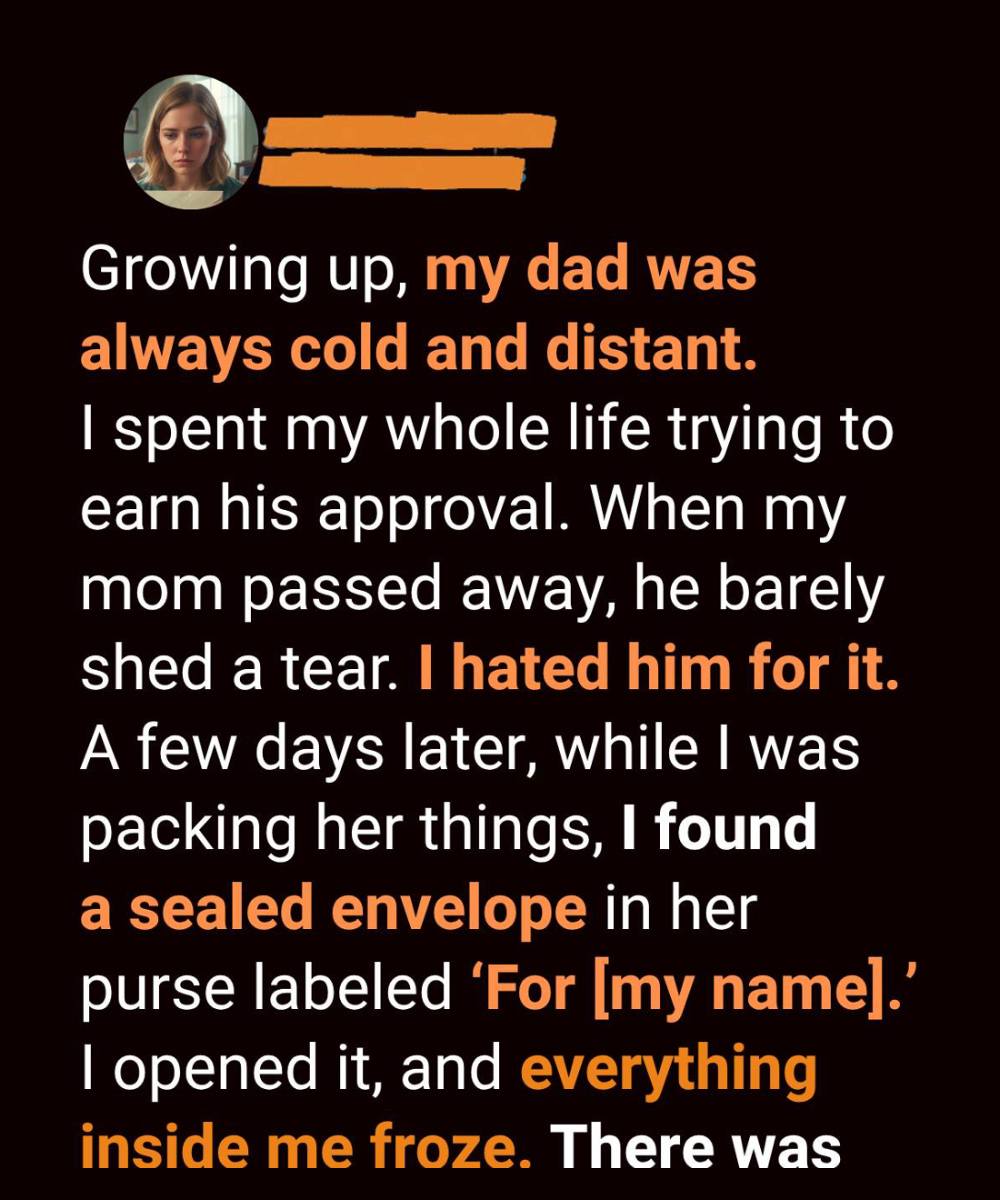 He wasn’t cruel. He wasn’t loud. He was simply distant—measured in his words, careful with his emotions, impossible to read. I spent years chasing scraps of approval: a nod after a good grade, a rare “That’s fine” after a school recital. I would have given anything for warmth.