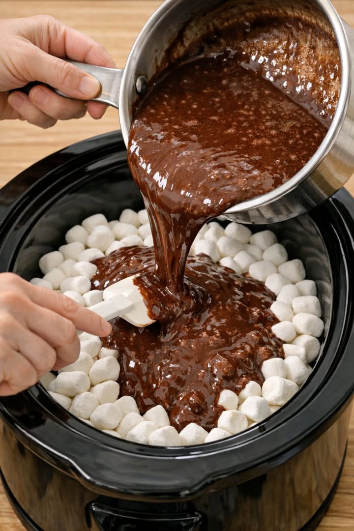 This slow cooker dark chocolate fondue is the kind of shareable dessert that vanishes almost as soon as you lift the lid. The method is wonderfully simple: you make one silky mixture on the stovetop with heavy cream, dark chocolate chips, butter, and vanilla, then pour it over a bed of fluffy marshmallows in the slow cooker. The gentle heat turns everything into a rich, glossy pool of chocolate, perfect for dipping fruit, cookies, or cubes of pound cake. Fondue in its classic form traces back to Switzerland, but this version leans into American pantry staples and the convenience of a slow cooker, making it ideal for casual entertaining or a cozy movie night.