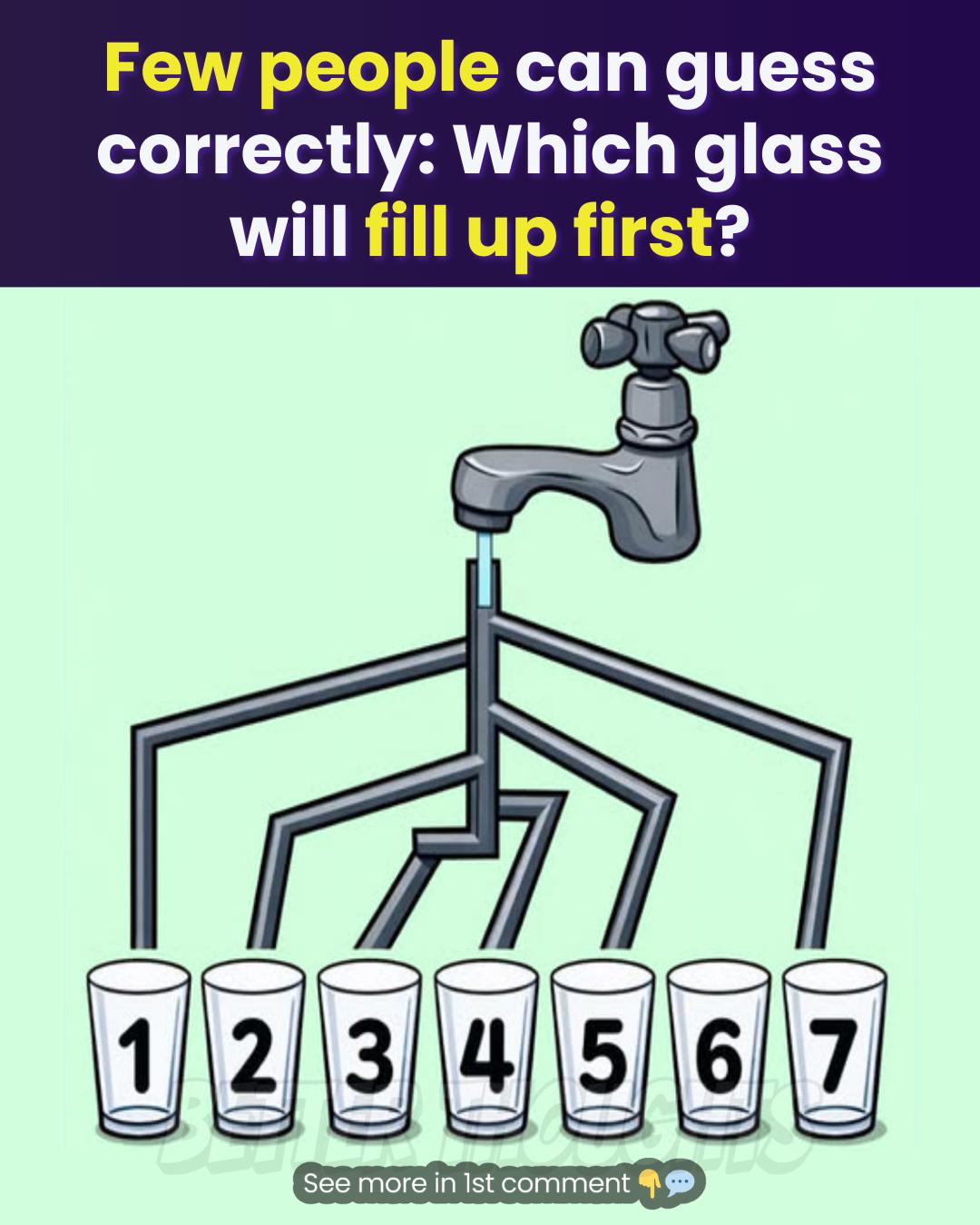 At first glance, the challenge seems simple: several glasses connected by pipes, water flowing in, and one question—which glass fills first?