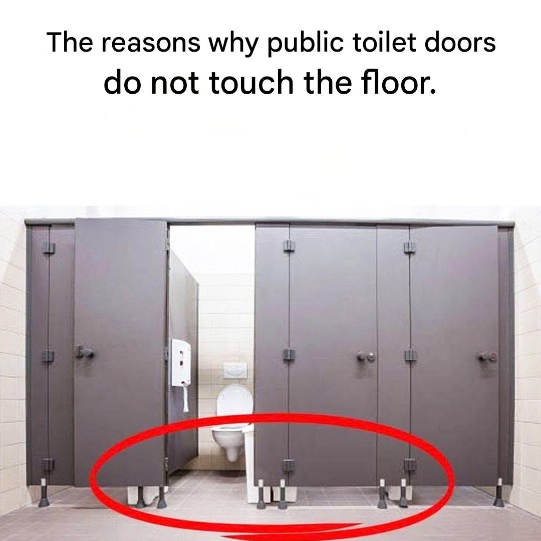 Have you ever been to a toilet in a shopping center or train station and wondered, “Why don’t the cubicle doors ever go all the way down to the floor?” This small, barely discreet space may seem inconvenient… and yet, it’s there for very good reasons.